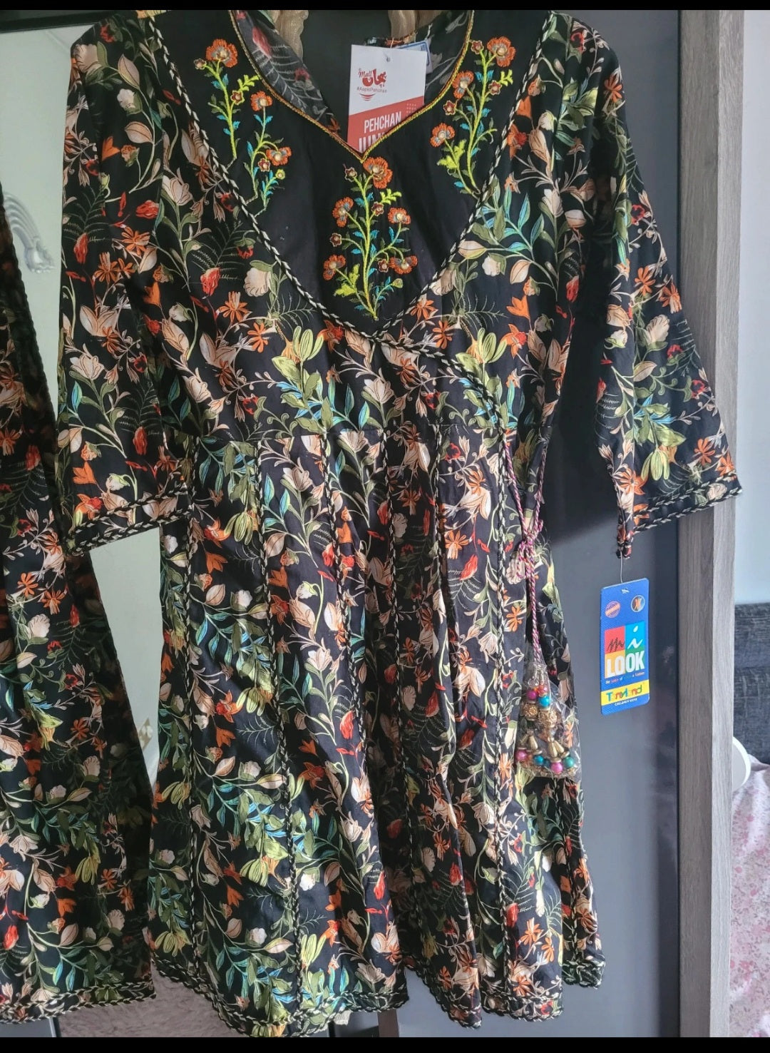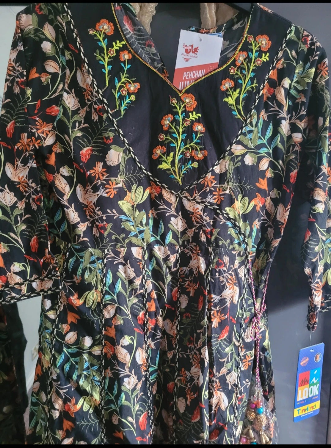 This product is a beautiful 3-piece suit designed for girls aged 10, with a traditional Asian Pakistani Indian style known as Salwar Kameez. The material is a comfortable cotton blend, featuring multi colours that reflect the vibrant culture of Pakistan. The brand is Pehchan, known for their quality and attention to detail in their garments, making this outfit a lovely choice for young girls looking to celebrate their cultural heritage.