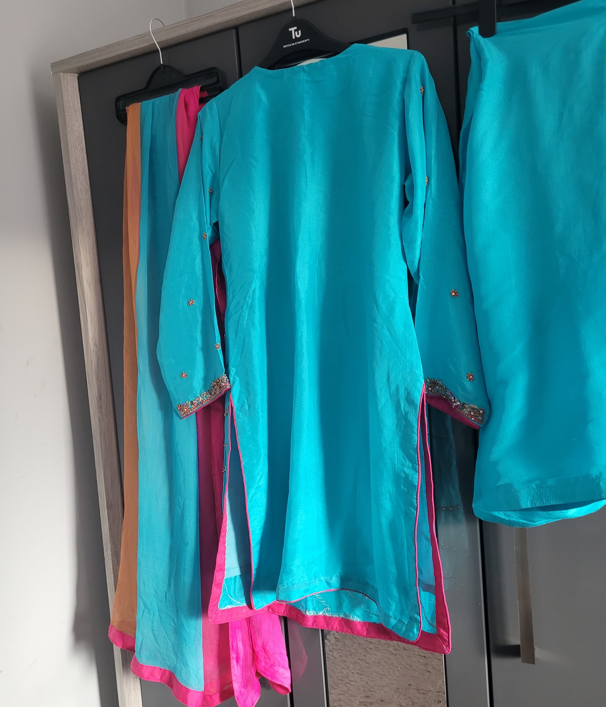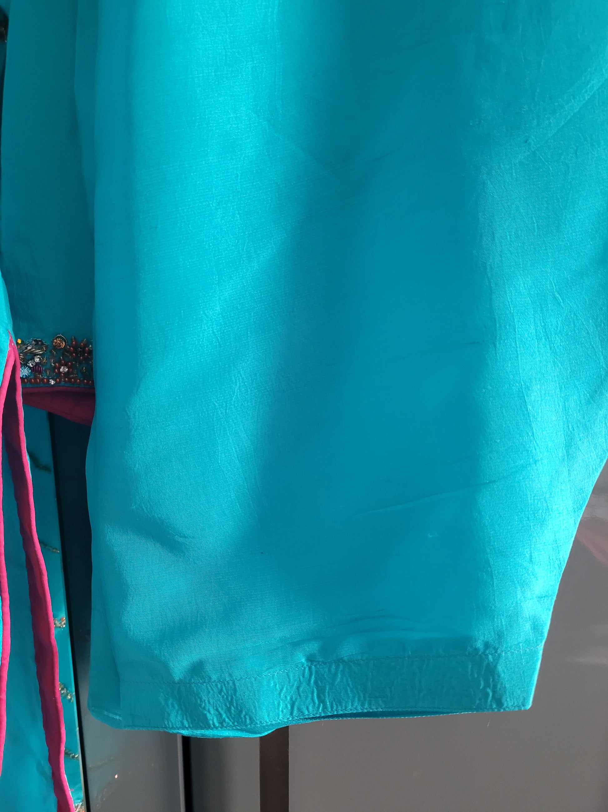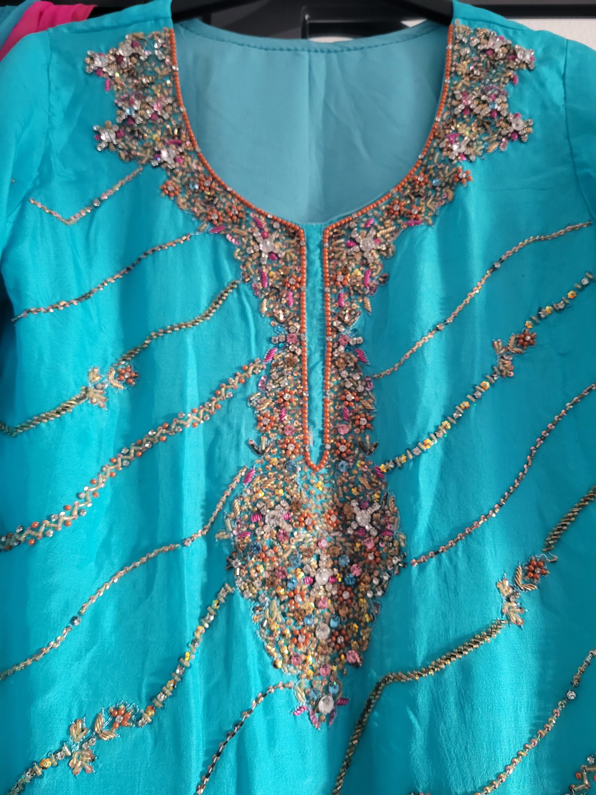 Beautiful turquoise Indian Pakistani embroidered shalwar kameez 3 piece suit