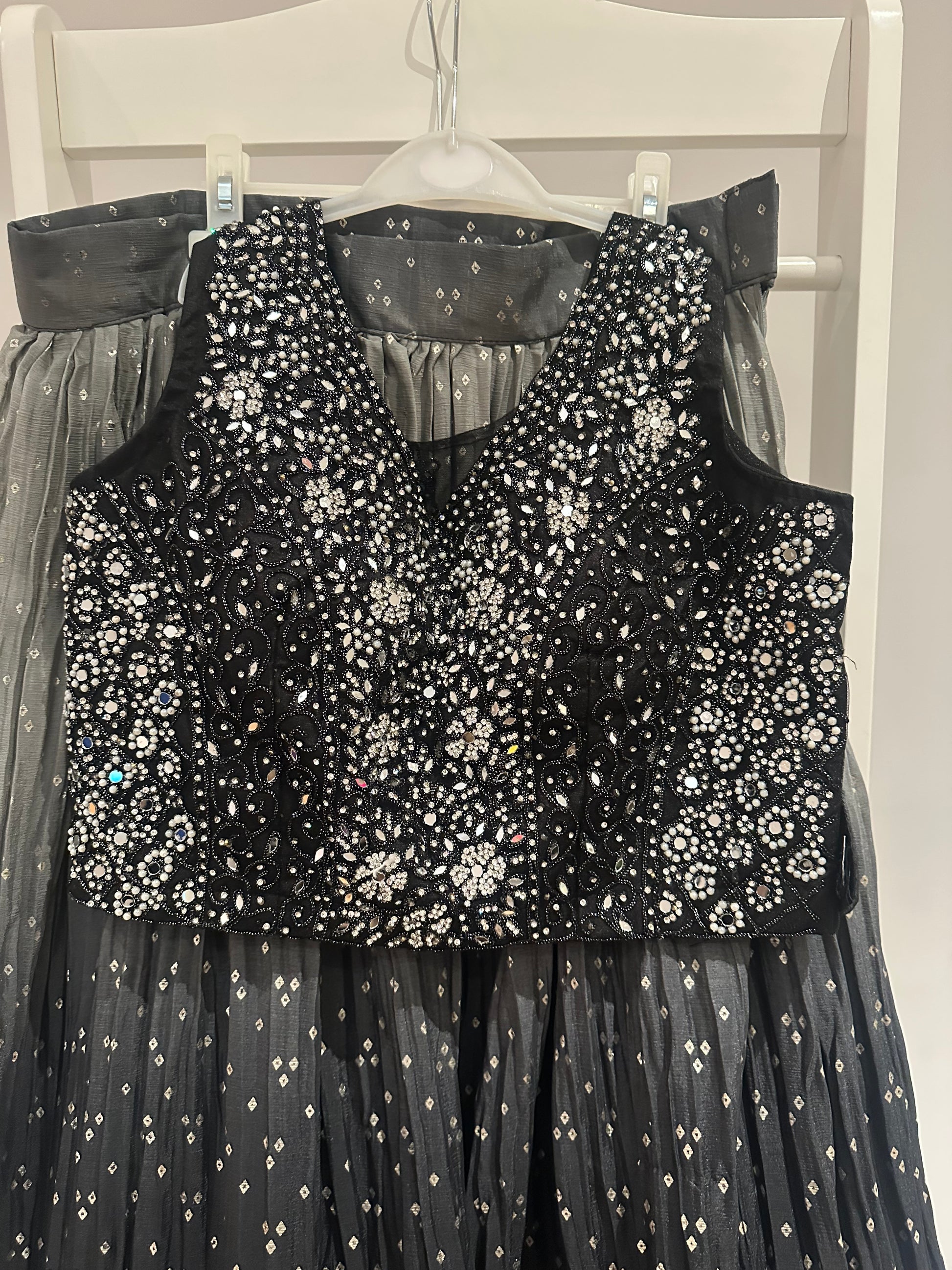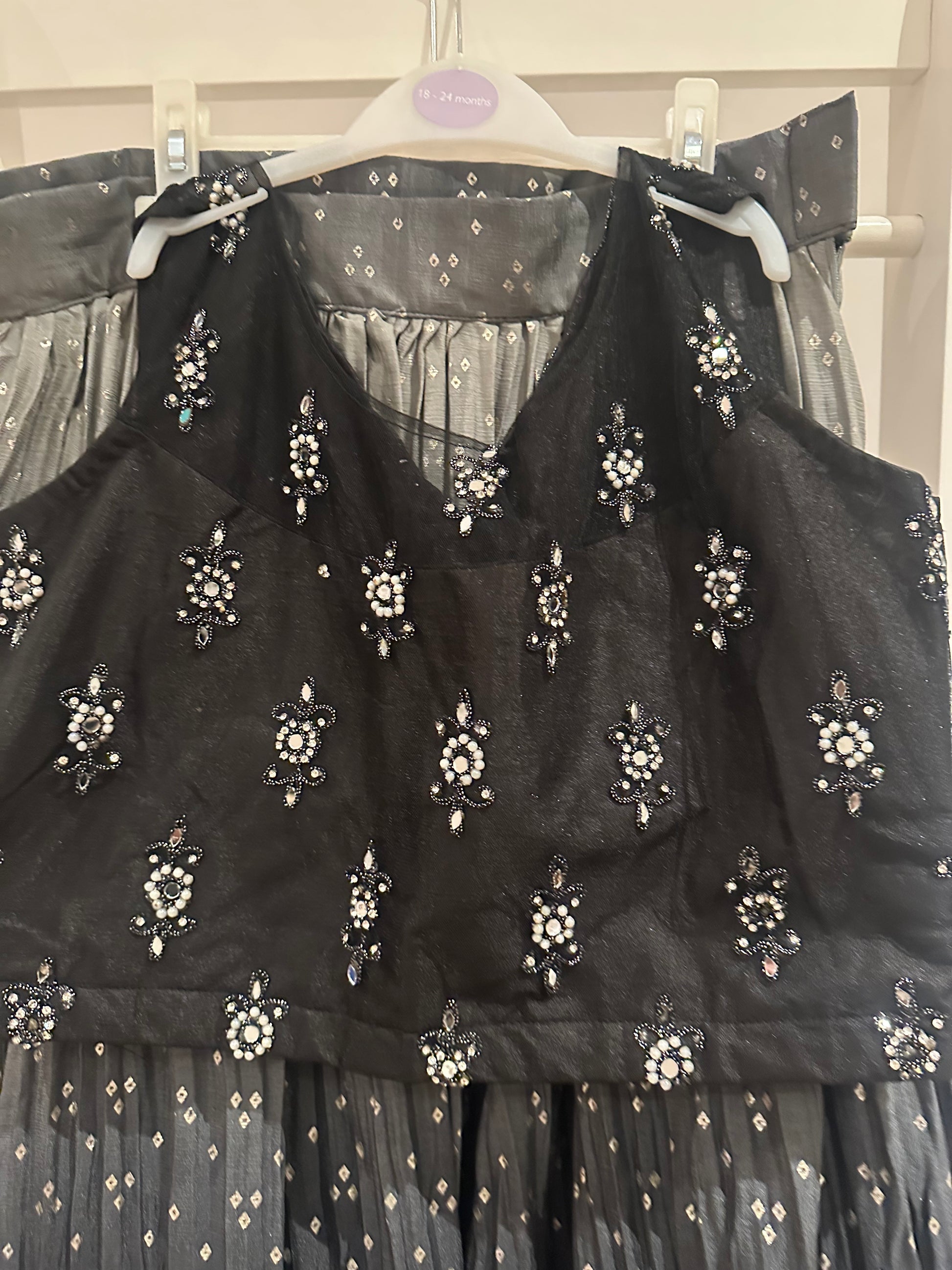 Black lehenga worn once. With glass embroidered top. No chunni hence price. Excellent condition.