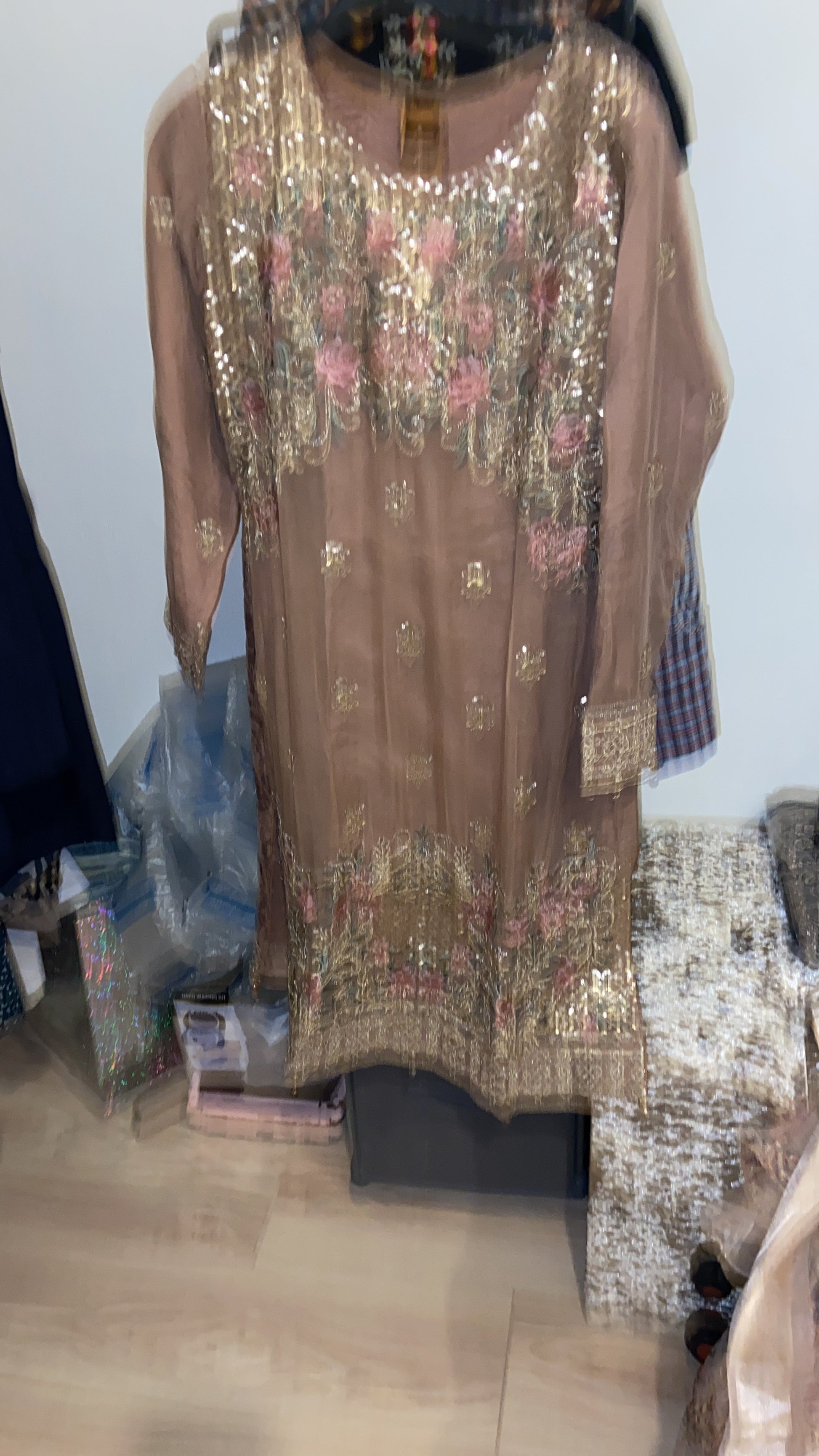 Heavy threats and sequences all over the dress three pieces suits any occasion size small
